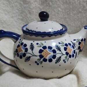 Share Boleslawiec Polish Pottery Coneflower Blue 92 teapot and matching mug set