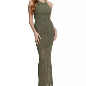 Share GUESS Women's Sophie Halter Maxi Sweater Dress- Green- Size M