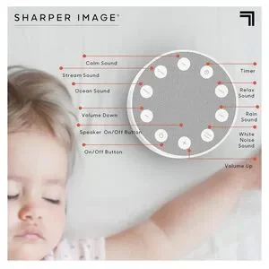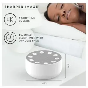 CALMING NATURE SOUNDS: Close your eyes and quiet you mind to the soothing sounds of nature, white noise, or one the relaxing melodies featured on the Sharper Image Sleep Therapy White Noise Machine.