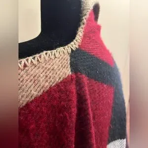 Used but still tons of life left. No tags whatsoever, fabric feels like wool blend or polyester - my guess. Shows some pulling here and there. Item was thrifted, no brand tags