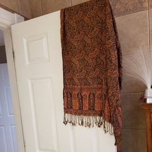 This shawl was brought back from Italy, I believe. It is very soft to the touch and very comforting when you wrap yourself in it. There are no tags, so again I can't be certain where it came from but it was brought back while on a trip to Europe.