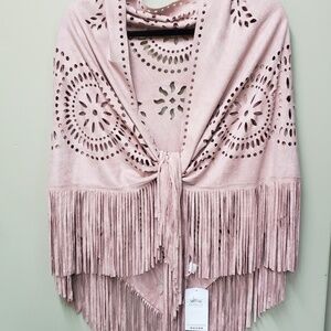 Shawl Wrap Solid Pink Colour OS Fringe Faux Suede Poncho