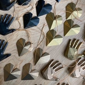 Unique metal heart on linen string and assorted beads. Hang from a doorknob, on a wall for decor or simply display flat on a shelf. Measures 6” from top to bottom, heart is 2” across
