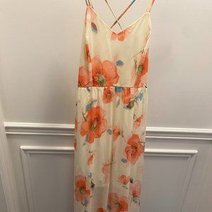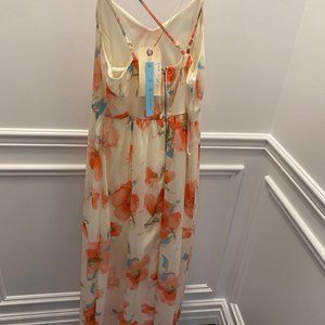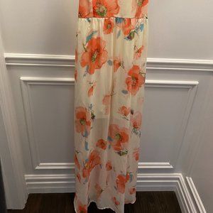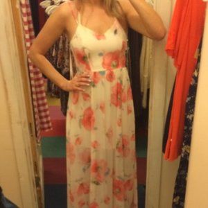 beautiful floor length floral dress - cream colour with pink and blue florals