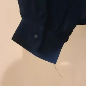 Beautiful ruffled button down shirt. Used to be mine! Loved this shirt. Was so easy to style. (think the black Jean skirt in my closet😉) it's honestly so cute. Gorgeous teal color. Still in perfect condition as well. Size small. Fabric details in pictures.