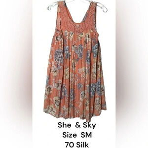 She & Sky dress,silk,halter,plisse,lace,floral flounce,summer dress,boho,event