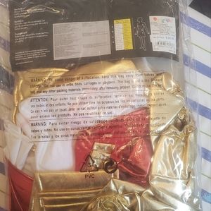 Brand new, haven't opened. Package says it comes with the dress, detachable cape, pair of cuffs, headpiece, and boot covers. Haven't checked anything in the bag. Size medium or large available.