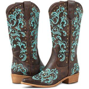 SheSole Ladies Cowboy Boots Fashion Toe Mid Calf Women's Western Cowgirl Boots