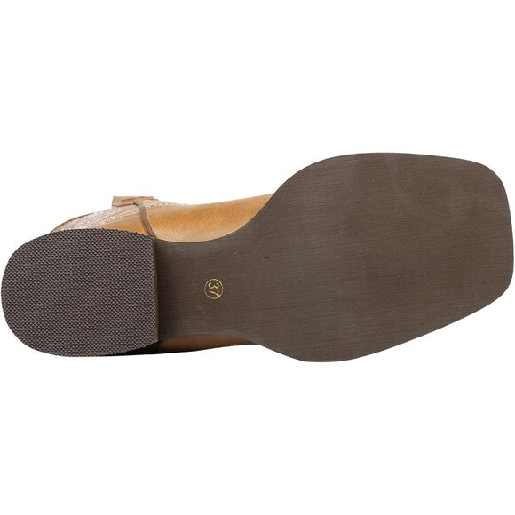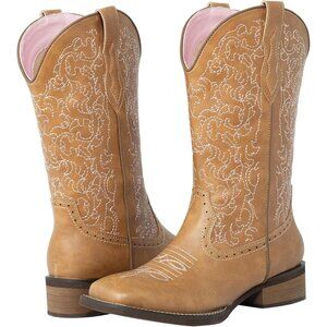 SheSole Western Boots Women Brown Tan Faux Leather Square Toe Wide Mid Calf
