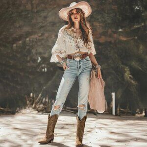 Feminine Touch: Womens cowboy boots designed with western embroidery and metal studs that combine rugged cowboy boots with feminine appeal