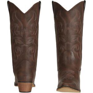 SheSole Western Boots Women Dark Brown Faux Leather Square Toe Wide Mid Calf