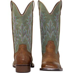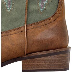 DUAL COLOR DESIGN: The Women's Cowgirl Boot is dual color with a unique turquoise shaft and distressed design.A modern blend of turquoise and brown creates a bold, eye-catching contrast that elevates your style effortlessly