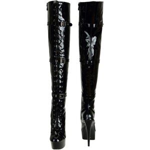 SheSole Women's Patent Leather Thigh High Heel Boots | Platform Zip Lace Up