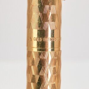 Original Sheaffer USA gold-plated fountain pen, featuring a detailed engraved pattern and classic Sheaffer nib. Elegant and well-balanced in hand.