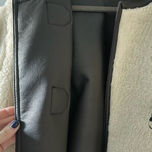 Toteme look alike. Shearling jacket, faux leather lining (dark brown), silver metal clasps.