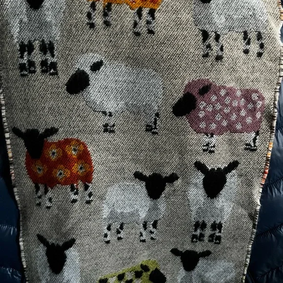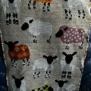 Cozy up with this charming sheep patterned wool scarf. Featuring a delightful mix of colors, it's perfect for adding a playful touch to any outfit. 180x30cm