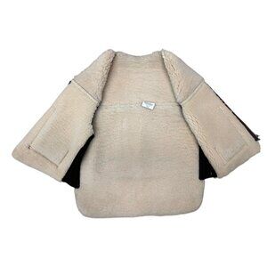 This real sheepskin vest in size Large is a perfect blend of warmth and style. In like-new condition, it offers premium insulation while maintaining a sleek, versatile design. The zipper closure ensures a secure fit, making it ideal for layering in colder weather.