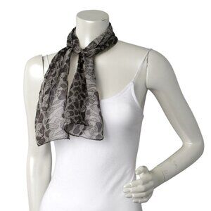 Sheer style neck/head scarf in a thin longer style with sqaure ends. Can be worn tied on the neck or as a partial head cover.Very neutral abstract grey/white print.