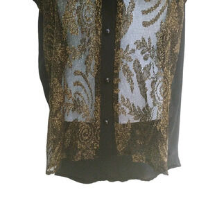 Sheer Black and Gold Sleeveless Button Down Blouse S