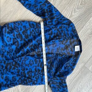 Stylish sheer cardigan with a bold blue and black animal print. Perfect for layering. Maternity but I wore it more when I wasn’t pregnant 😂