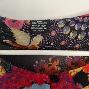 Fantastic sheer blouse by brand Desigual. Black with colorful pattern.