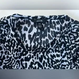 Sheer black and white Jacob top in excellent condition. Worn once. Very stretchy and true to size. This top will hug your curves. It has some nice length to it. Wear a tank top underneath or blazer over top for coverage. Very cute piece.