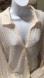 Elegant sheer lace blouse with button-up front. Features a delicate cream color top with flair sleeves.