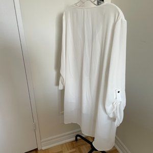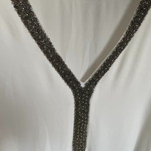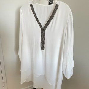 Beautiful long diaphanous blouse with stunning beaded trim. Fits a 12/14/16 or a small 1X