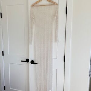 Sheer Mesh Pearl Maxi Dress in Ivory