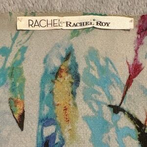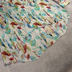 Sheer Oversized Feather Print Rachel Roy Blouse Medium Hi-Low hem Button-up Boho