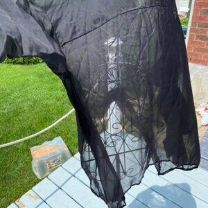 Sheer Polyester One Size Flowing Top with Gathered Seam Sleeves EUC. This top is so unique and stunning! Oversize fit