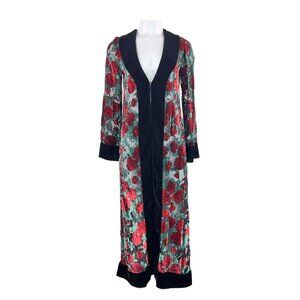 Sheer rose robe in burn out velvet.