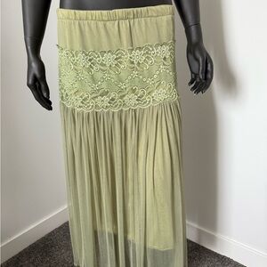 ⚪️ Sheer Sage Green Tulle Midi Skirt with Lace Detail | M/L