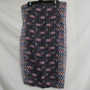 This stylish scarf features a vibrant sleeping fox design with a mix of geometric and floral patterns