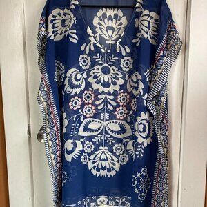 Sheer Tunic Coverup with Side Slits Pullover Blue & White Floral 1size fits all