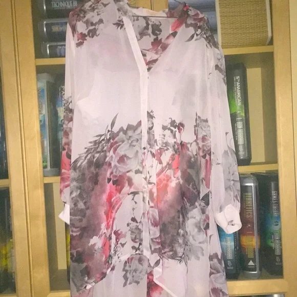 Sheer blouse. Back is a intentionally longer that front. Full sleeve