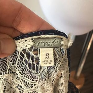 Sheer, flowy boho chic too by Gimmicks by BKE. Built in lace lining. Lace details throughout. Excellent condition