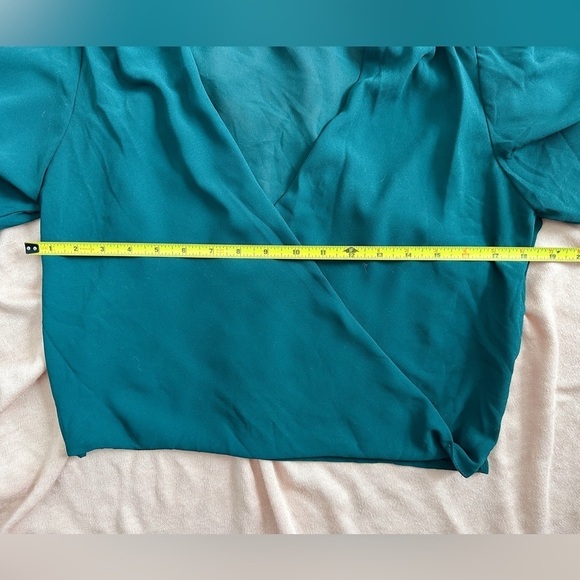 Sheer cropped Wrap Blouse - Emerald Green - Short Sleeve- Size Medium