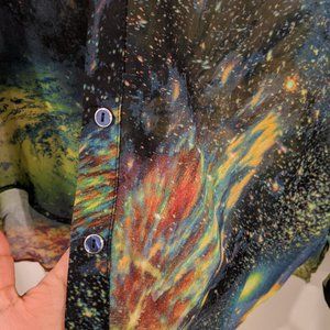 A gorgeously sheer button up top with a galaxy/nebula print. Originally purchased from Nasty Gal.