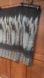 Measures 68 inches long by 34 inches wide. Gray and black design. Slightly sheer, not too much and not slippery fabric so it will stay in place. I do not know what it is made of.