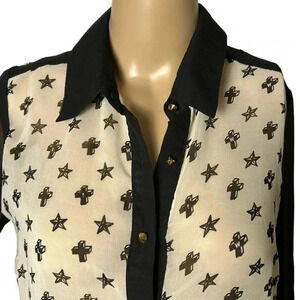 Sheer,lace up,blouse,cross,stars,hi lo,punk,goth,cosplay,steampunk,whimsigoth