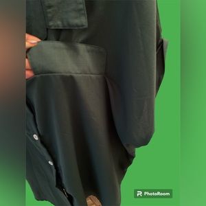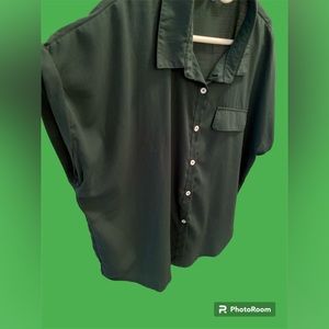 Short sleeve button down top. Faux front pocket, no other pockets or splits. Sleeves are pre-rolled. No stretch, gently used, in good condition. Pit to pit measures 28”, length 28.5”