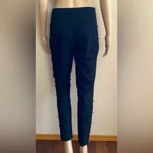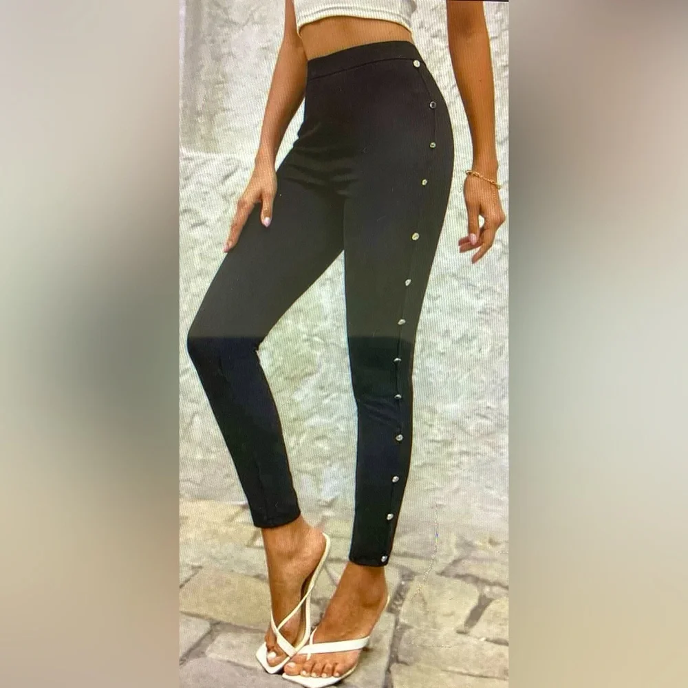 High Waist Fake Button Skinny Crop Pants. Side Hook/Eye & Zip Closure