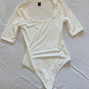 Shein Basic White Scoop Neck Bodysuit XS. Mid sleeve. Stretchy. Never worn. 91% Polyester, 9% Elastane