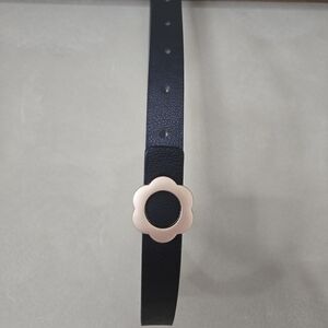 Shein | Black Fake Leather Belt with Cream Flower Buckle, Size M (Made Small)