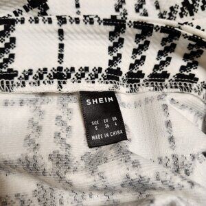 Shein Black and White Prive Split Hem Plaid Skirt Size Small