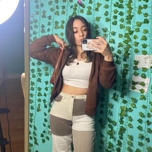 the material of the sweater is SOOO nice & the fit rlly compliments anyone’s body type! I’m only selling bc I gained weight since I first bought this sweater & it doesn’t fit me as well :( I’d love to find her a new home🥰 the sweater is in great condition, no holes or strings sticking out. However, it only zips up halfway as seen in the third slide. The material is still great and I find that this sweater looks cuter unzipped