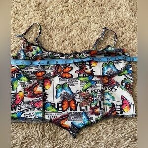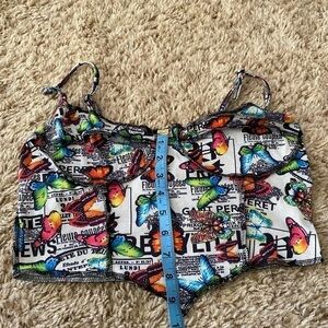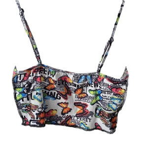 Shein Butterfly Top-Stitching Bandana Hem Bustier Crop Cami Top (Medium)