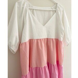 Colorblock dress from shein. Size us4. White on top with light pink and peach. V neck with tiered style bottom. Good condition. Slight puff sleeve.