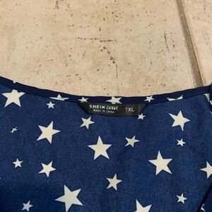 Shein, Shein Curve, plus size, 1XL, cami, camisole, tank top, star print, stars, blue, white, navy, patriotic, summer, casual, relaxed fit, adjustable straps
